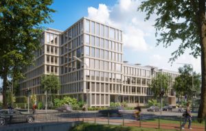 Bürogebäude mit kleinteiligen Gewerbeflächen im Erdgeschoss • ca. 15.500 m² BGF • Bauherr: Swiss Life Asset Managers (ehem. Corpus Sireo) • Architekt: JSWD Architekten, Köln